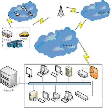 長途客車GPS定位監(jiān)控系統(tǒng)的網(wǎng)絡(luò)結(jié)構(gòu)圖: